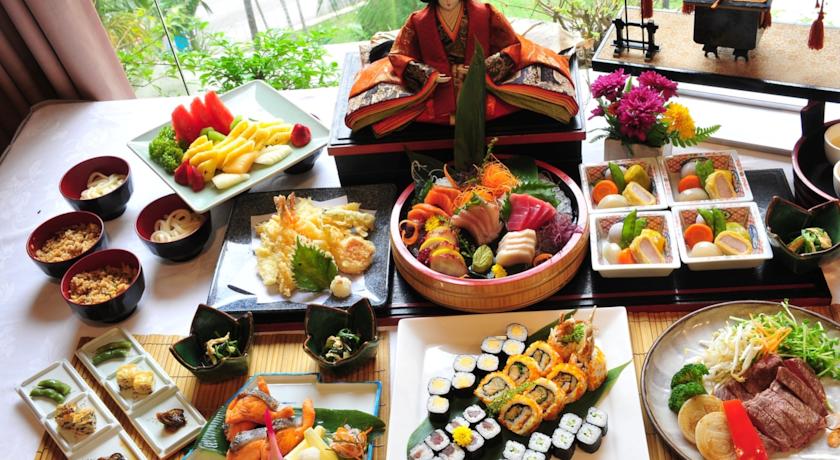 رستوران Zende که موقعیت مکانی همانند لابی دارد، در تمام مدت روز انواع غذاهای آسیایی و بین المللی به به صورت بوفه ارائه می دهد. رستوران ژاپنی Kofuku با منظره ای رو به باغات سرسبز اطرف رستوران، پذیرایی وعده های ناهار و شام را بر عهده دارد. همچنین مهمانان می توانند نوشیدنی های مختلف را در لژ Cheraza به همراه موسیقی و تفریحات زنده میل نمایند. علاوه بر مرکز تجاری، این هتل دارای زمین تنیس، زمین اسکوآش و نیز فروشگاه هدیه می باشد.