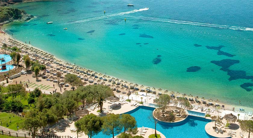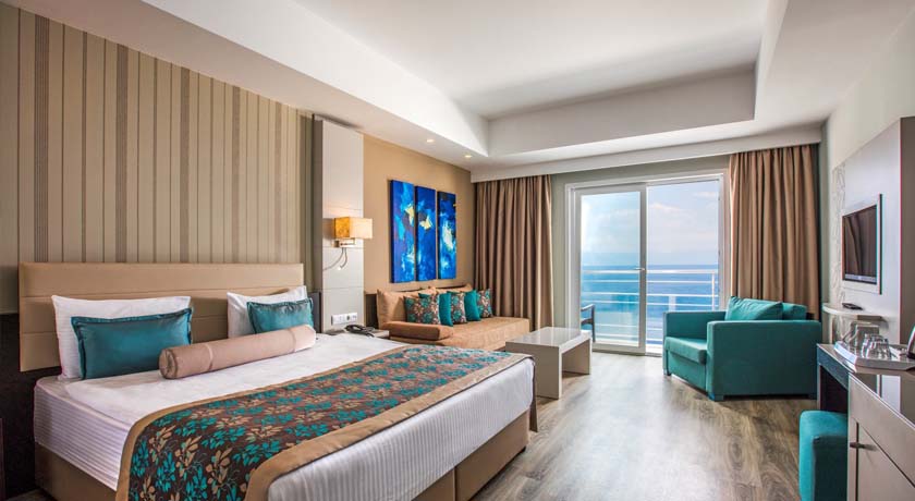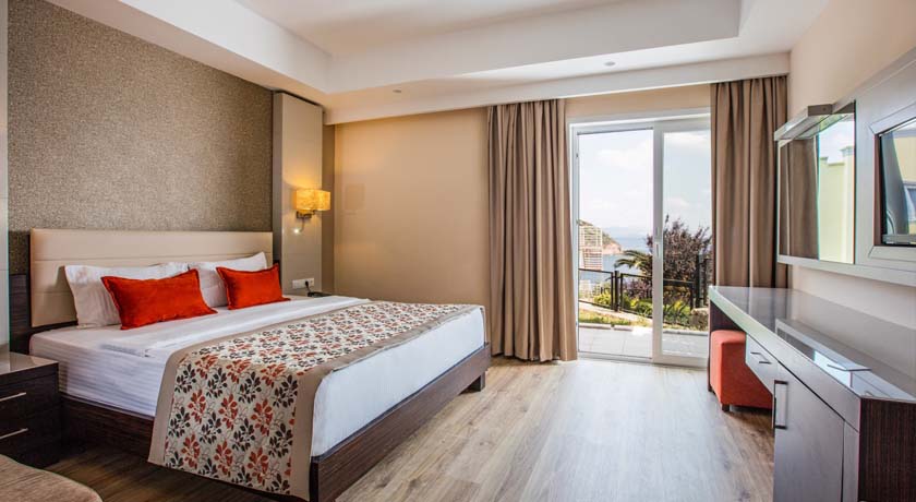 تمام اتاق های ساختمان اصلی دارای بالکنی می باشند که مشرف به دریا یا رشته کوه هستند. همچنین اتاق های مخصوص معلولین و اتاق هایی مخصوص افراد غیرسیگاری هم موجود است. برای اینکه شما کاملاً در حریم خصوصی خود به استراحت بپردازید این هتل، گاردن ویلاها را در اختیار شما قرار می دهد.از اول آوریل تا سی و یکم اکتبر آریا کلاروس بیچ اَند اسپا ریزورت دارای سرویس all inclusive (یعنی صبحانه، ناهار، شام و نوشیدنی محلی ترکیه و عصرانه از صبح تا 11 شب را شامل می شود) است.