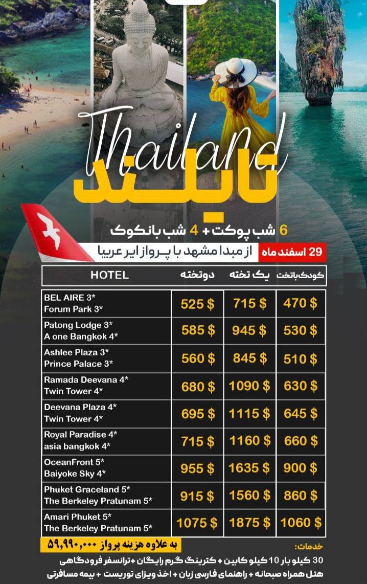 همه موارد تور تایلند
