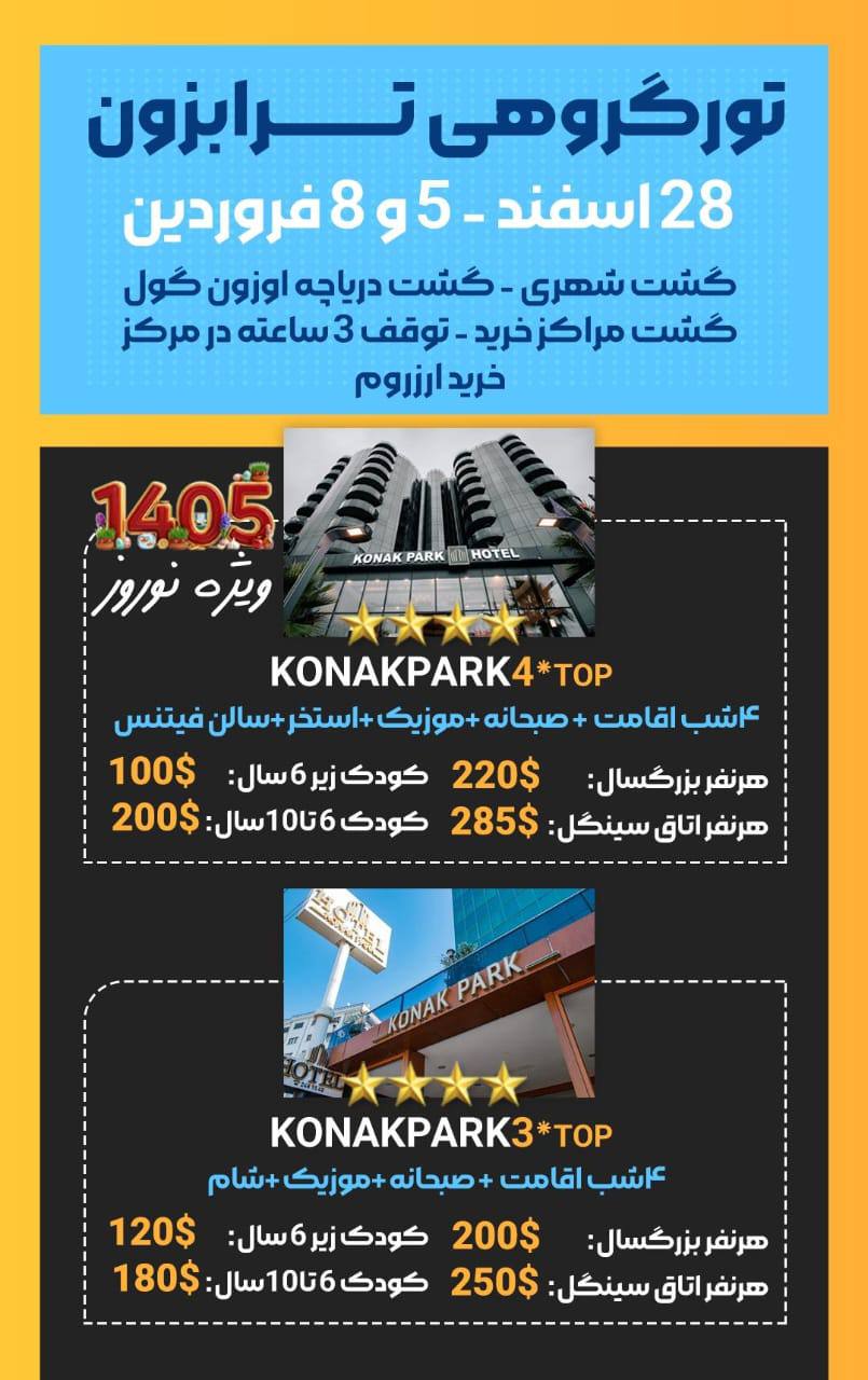 خدمات:ترانسفر مرز به مرز، اقامت در هتل با صبحانه، گشت اوزون گلهرروز گشت شهری رایگان بهمراه گشت خرید، لیدر همراه، بیمهموسیقی زنده هر شب در هتل