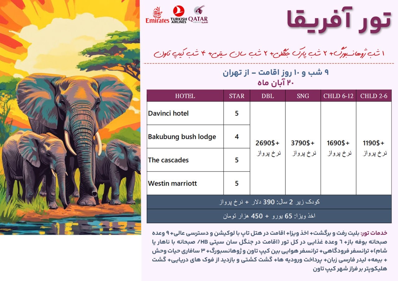 • نوع سفر: هوایی Emiratesهوایی Qatar