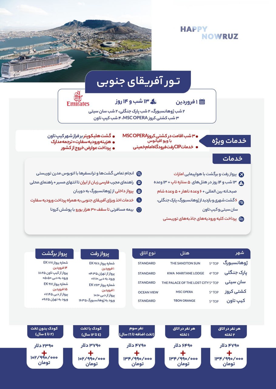 تهران کیپ تاونپارک جنگلیسان سیتیژوهانسبورگکشتی کروز