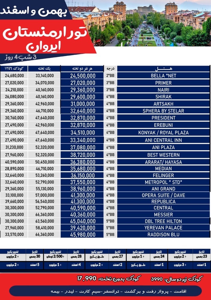 ایروان 3 شب