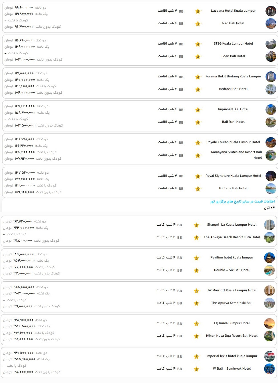 هتل های انتخابی به همراه صبحانه ویزای اندونزی -گشت شهری در بالی و کواالالمپور-
