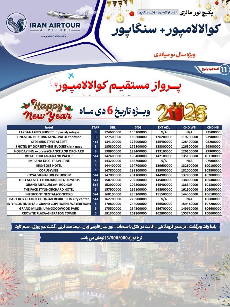 • نوع سفر: هوایی ایران ایرتور