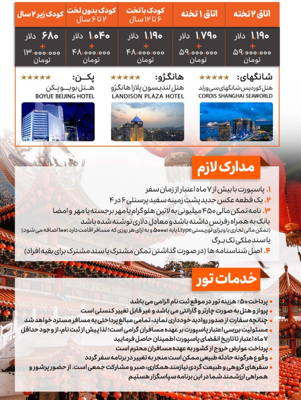 6 گشت شهری + ۴و عده ناهار | اخذ ویزای انفرادی توریستی چین لیبل دار