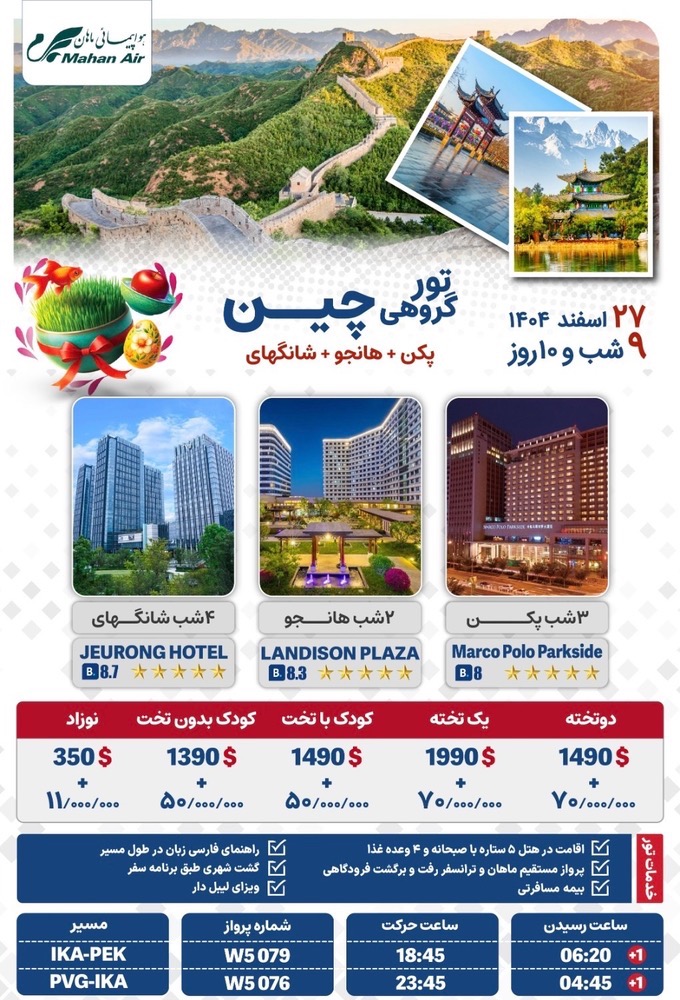 • مدت تور: 9 شب