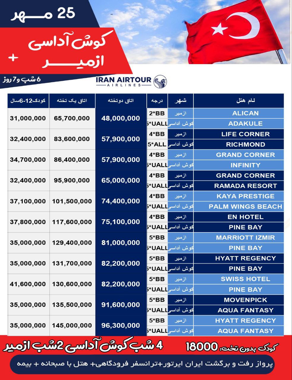 • نوع سفر: هوایی ایران ایرتور
