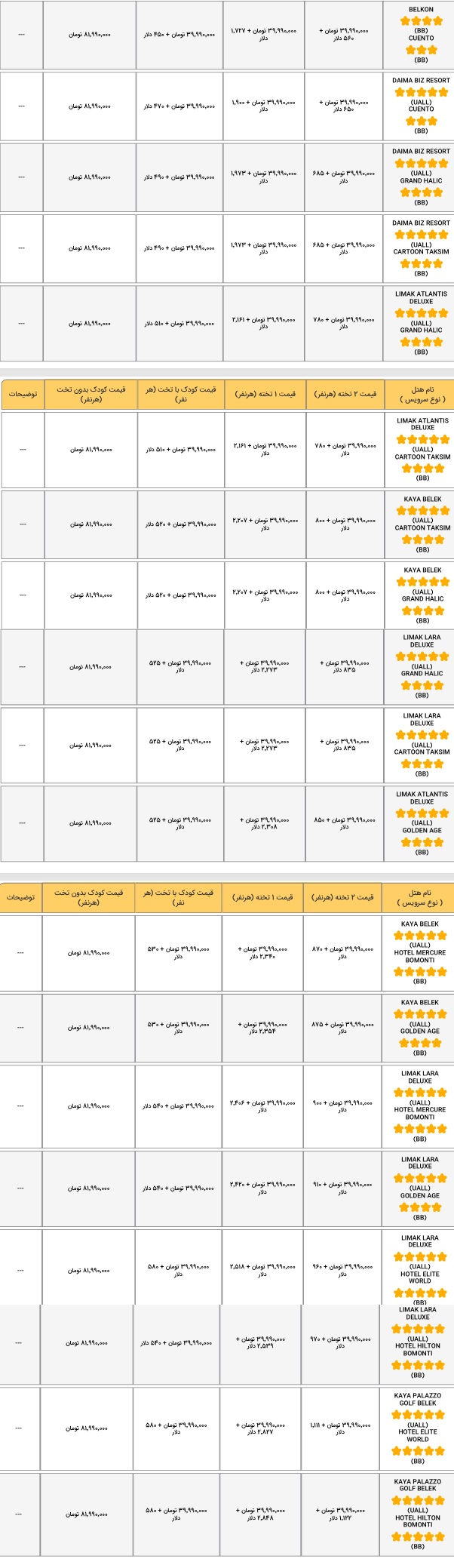 همه موارد تور ترکیه